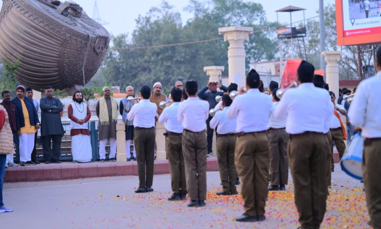 Ayodhya-संघ के स्वयंसेवकों ने शृंग अभ्यास एवं संचलन किया