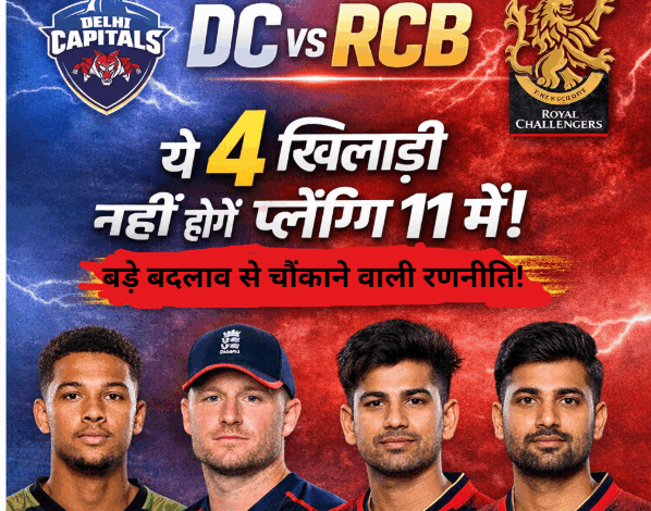 Sports/IPL Update: आईपीएल 2026 में शानदार फॉर्म में चल रही रॉयल चैलेंजर्स बेंगलुरु अब अपना अगला मुकाबला दिल्ली कैपिटल्स के खिलाफ खेलने जा रही है। टीम लगातार जीत दर्ज कर प्लेऑफ की ओर बढ़ रही है, लेकिन इसके बावजूद अगले मैच में प्लेइंग इलेवन में बड़े बदलाव देखने को मिल सकते हैं। टीम मैनेजमेंट संतुलन को ध्यान में रखते हुए कुछ अहम खिलाड़ियों को बाहर बैठा सकता है, जिसमें दो विदेशी खिलाड़ी भी शामिल हैं।