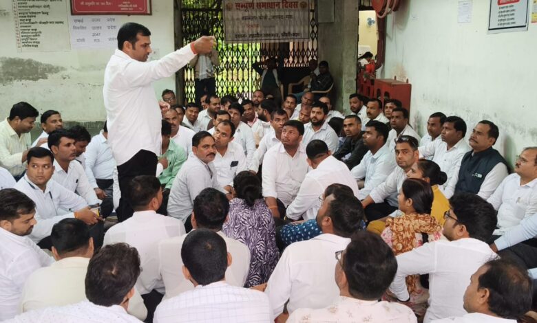 Ghosi (Up News) : भ्रष्टाचार के आरोप में निलंबित किए गए अमिला के लेखपाल दिनेश चौहान की बहाली की मांग को लेकर घोसी तहसील के लेखपालों का धरना तीसरे दिन भी जारी रहा। तहसील सभागार के सामने दर्जनों लेखपाल बैनर और तख्तियां लेकर धरने पर बैठे रहे तथा निलंबन को “अन्यायपूर्ण” बताते हुए उसका विरोध किया।