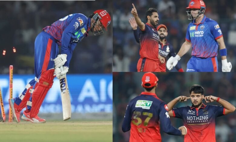 आरसीबी की जीत के नायक रहे जॉश हेजलवुड और भुवनेश्वर कुमार, जिन्होंने नई गेंद से कहर बरपाते हुए दिल्ली कैपिटल्स की बल्लेबाजी लाइनअप को तहस-नहस कर दिया। दोनों ने शुरुआती चार ओवरों में ही 6 विकेट झटककर मैच का रुख पूरी तरह बदल दिया। हेजलवुड ने 4/12 और भुवनेश्वर ने 3/5 के शानदार आंकड़े दर्ज किए।