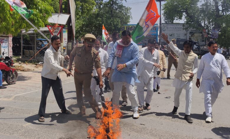 Mau News-असम के मुख्यमंत्री द्वारा कांग्रेस के शीर्ष नेताओं के विरुद्ध कथित अभद्र एवं अमर्यादित भाषा के प्रयोग के विरोध में शुक्रवार को जिला कांग्रेस कमेटी, मऊ के नेतृत्व में जिला कांग्रेस कार्यालय, बुनकर कॉलोनी पर जोरदार प्रदर्शन किया गया। बड़ी संख्या में जुटे कांग्रेस कार्यकर्ताओं और पदाधिकारियों ने एकत्र होकर मुख्यमंत्री के खिलाफ नारेबाजी की तथा उनका पुतला दहन कर अपना विरोध दर्ज कराया। इस दौरान पूरे परिसर में राजनीतिक माहौल गर्म रहा और कार्यकर्ताओं में भारी आक्रोश देखने को मिला।