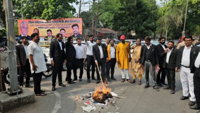 Naini News-Read Also-Prayagraj News-उपमुख्यमंत्री ब्रजेश पाठक पर अभद्र टिप्पणी पर अधिवक्ताओं ने फूंका अखिलेश यादव का पुतला व की प्रदर्शन व नारेबाज़ी