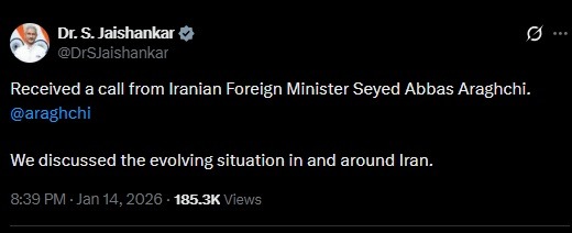 डॉ जयशंकर ने सोशल मीडिया के माध्यम से जानकारी साझा करते हुए बताया कि बातचीत में क्षेत्रीय घटनाक्रम और उससे जुड़े व्यापक प्रभावों पर चर्चा हुई। मौजूदा भू-राजनीतिक परिस्थितियों को देखते हुए यह संवाद अहम माना जा रहा है।
