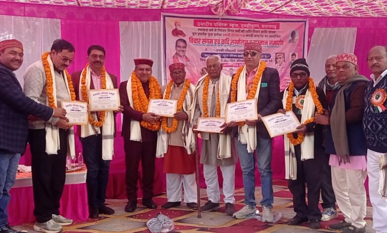 Pratapgarh News-दयादीप पब्लिक स्कूल, दंडीपुरम् में सोमवार को स्वामी विवेकानंद की जयंती के अवसर पर विचार संगम, कवि सम्मेलन एवं सम्मान समारोह का भव्य आयोजन किया गया। कार्यक्रम के दौरान क्षेत्र के प्रबुद्धजनों का सारस्वत सम्मान किया गया।