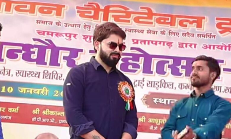 Pratapgarh News-कुंडा क्षेत्र के परानूपुर में आयोजित अंतरराष्ट्रीय कथा व्यास राजन जी महाराज की कथा के आयोजक आनंद पाण्डेय का लक्ष्मणपुर विकास खंड में आयोजित सिंधौर महोत्सव के अवसर पर माल्यार्पण कर भव्य स्वागत किया गया।