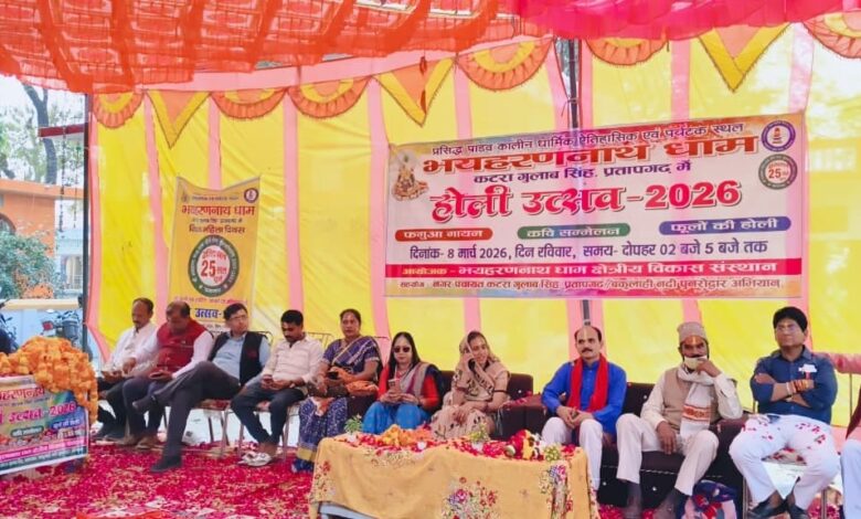 Pratapgarh News:प्रसिद्ध पांडवकालीन भयहरण नाथ धाम में होली उत्सव का भव्य आयोजन भयहरण नाथ धाम क्षेत्रीय विकास संस्थान के तत्वावधान में किया गया। कार्यक्रम का विधिवत शुभारंभ विधायक जीत लाल पटेल द्वारा फगुवा गायन के साथ हुआ। इस अवसर पर मुख्य मंदिर में लिंग रूप में विराजमान भयहरण महादेव सहित धाम परिसर स्थित सभी मंदिरों में देवी-देवताओं के साथ फूलों की होली खेली गई।