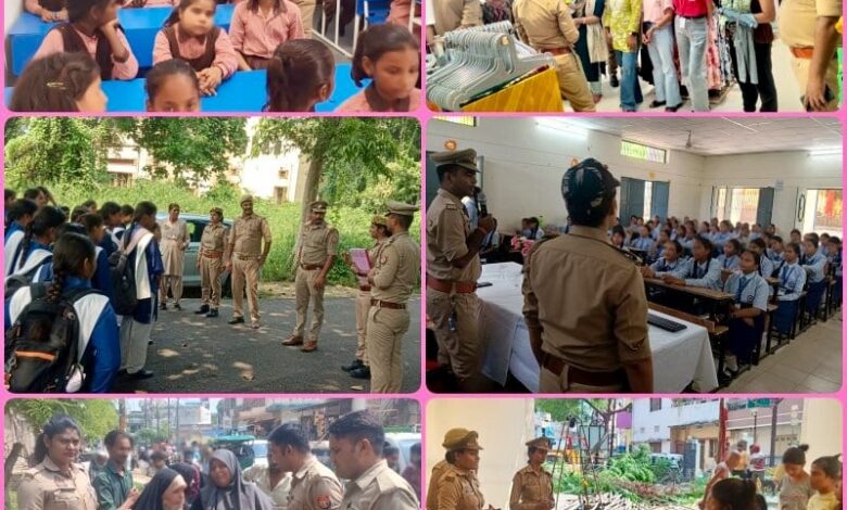 महिलाओं एवं बालिकाओं के साथ जुड़कर उन्हें सशक्त एवं सुरक्षित वातावरण देने का प्रयास किया जा रहा है। साथ ही “मिशन शक्ति 5.0” अभियान के अन्तर्गत नगर जोन के सभी थानों द्वारा प्रमुख बाजारों, कस्बा, चौराहों, स्कूलों/कॉलेजों, धार्मिक स्थलों तथा अन्य महत्वपूर्ण स्थानों पर महिला पुलिस कर्मियों द्वारा शासन व पुलिस विभाग द्वारा महिलाओं की सुरक्षा और सशक्तिकरण स्वावलंबन हेतु चलाई जा रही विभिन्न विभागों की योजनाओं जैसे मुख्यमंत्री कन्या सुमंगला योजना, निराश्रित महिला पेंशन योजना, उ०प्र० राज्य ग्रामीण आजीविका मिशन, राष्ट्रीय पोषण योजना, मुख्यमंत्री सामूहिक विवाह योजना, बेटी बचाओ-बेटी पढ़ाओ, प्रधानमंत्री उज्जवला योजना, पी०एम० स्वानिधि योजना, पी०एम० सम्मान निधि योजना, वन स्टाप सेन्टर, आयुष्मान योजना, सुरक्षित मातृत्व आश्वासन सुमन योजना, महिला शक्ति केन्द्र योजना, मुख्यमंत्री अभ्युदय योजना, कन्या सुमंगला योजना तथा पुलिस विभाग से संबंधित विभिन्न हेल्पलाइन नंबरों वीमेन पावर लाइन 1090, पुलिस आपातकालीन सेवा-112, सी०एम० हेल्प लाइन 1076, स्वास्थ्य सेवा हेल्प लाइन-102, एम्बुलेंस सेवा-108, महिला हेल्प लाईन-181, साइबर क्राइम हेल्पलाइन 1930 आदि के बारे मे पंपलेट बांटकर जागरूक किया गया।