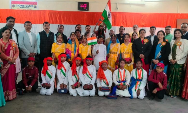 Renukoot News-लायंस क्लब रेणुकूट द्वारा प्राथमिक विद्यालय में गणतंत्र दिवस हर्षोल्लास से मनाया गया