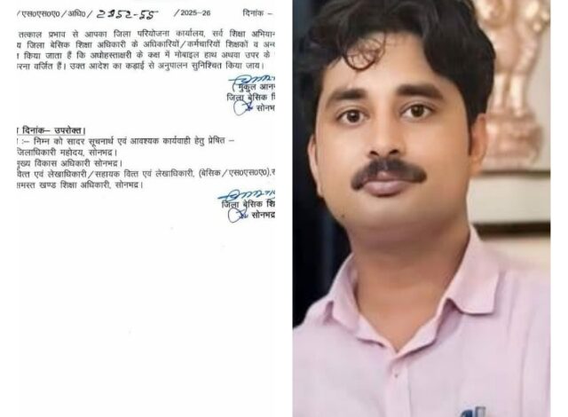 योगी सरकार में प्रदेश के अधिकारियों का अजीबो-गरीब आदेश अक्सर सुर्खियों में रहता हैं। अब सोनभद्र जिले से ऐसा ही एक मामला सामने आया है। यहां जिला बेसिक शिक्षा अधिकारी (बीएसए) ने कार्यालय में शिक्षकों, कर्मचारियों और आगंतुकों पर मोबाइल हाथ में या ऊपर की जेब में रखकर आने पर प्रतिबंध लगा दिया गया है।