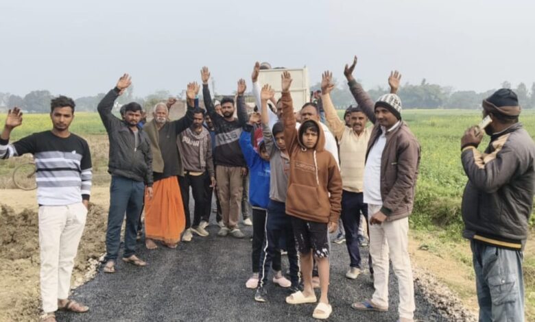 सड़क निर्माण में अनियमितता को लेकर ग्रामीणों का विरोध प्रदर्शन
