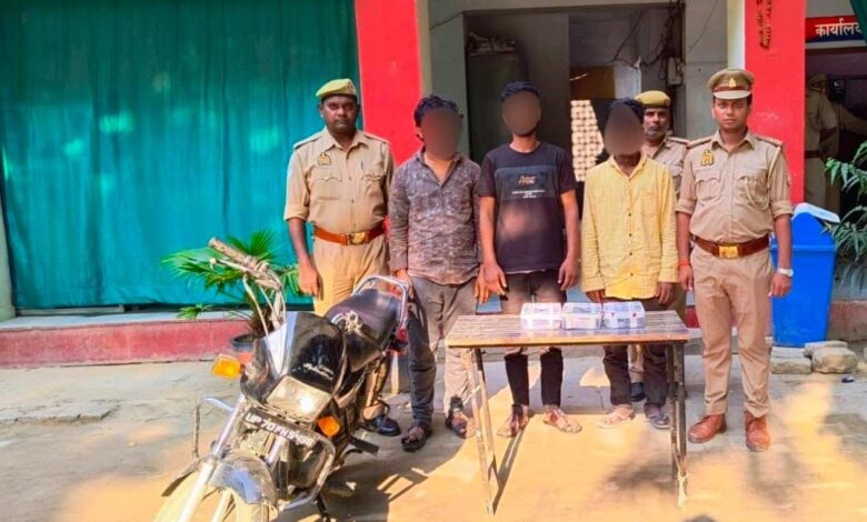 UP News-मुखबिर की सटीक सुचना पर एस ओ जी और नैनी की संयुक्त टीम ने गुरुवार को नये यमुना पुल के नीचे बंधवा मोड़ पर तीन शातिर चोरो को गिरफ़्तार किया है।पकडे गए अभियुक्तों मे बक्शी मोड़ा करेली निवासी सलमान, मुर्गा दरबार एडीए कॉलोनी करेली निवासी वसीम व 60 फिट रोड करेली निवासी फ़तेह खान शामिल है। इनलोगो ने विनायक नगर नैनी निवासी अर्जुन सिंह के यहाँ नगदी और गहने चोरी किये थे।